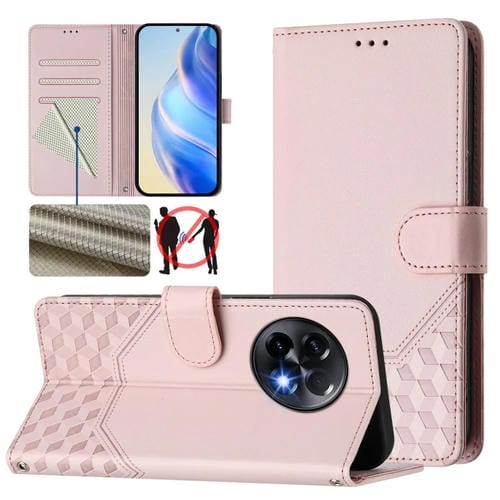 Funda de Cuero con Relieve de Panal para OnePlus 11R 5G Global Rfid (Rosa)