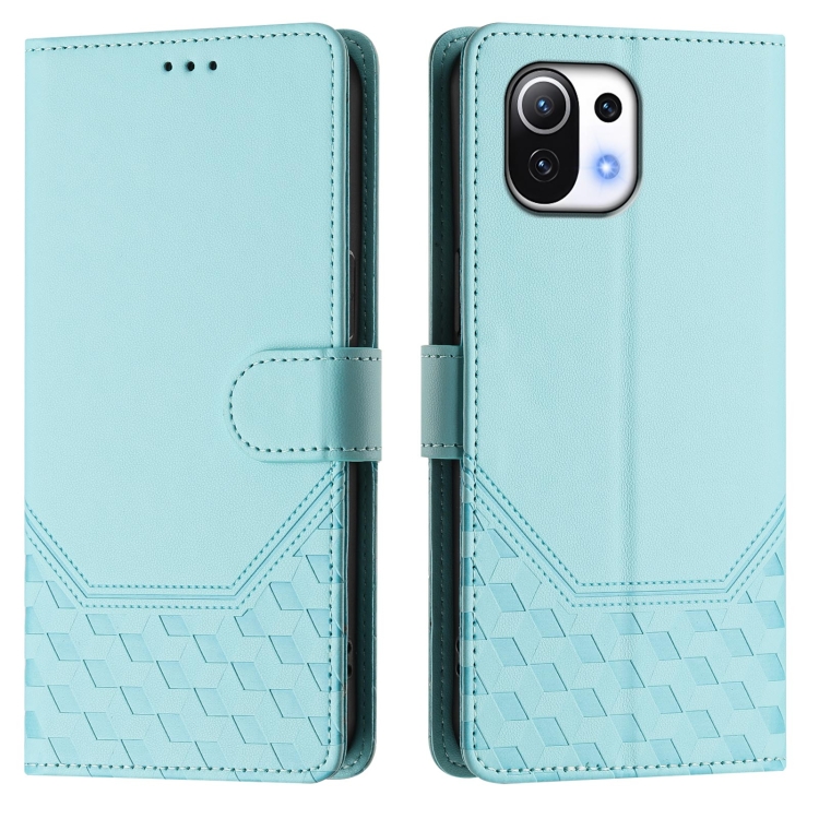 Funda de Cuero con Relieve de Panal Rfid para Xiaomi Mi 11 Lite / Mi 11 Lite 5G Ne (Verde Menta)