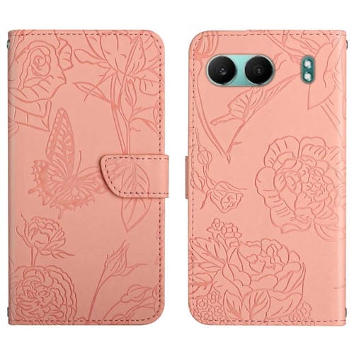 Funda de Cuero con Relieve Peonía y Mariposa para OnePlus Nord 4 5G (Rosa)