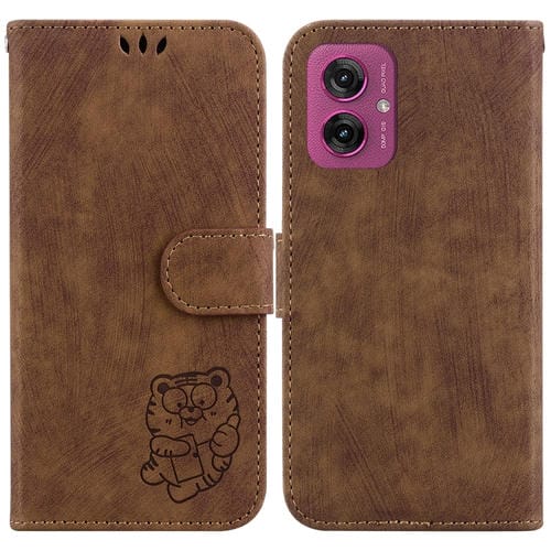 Funda de Cuero con Relieve de Tigre para Motorola Moto G55 (Marrón)