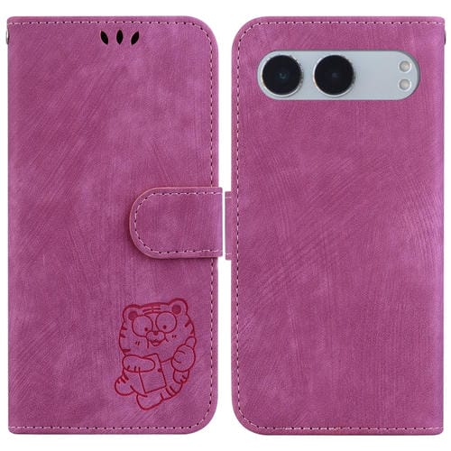 Funda de Cuero con Relieve de Tigre para OnePlus Nord 4 (Rosa Rojo)