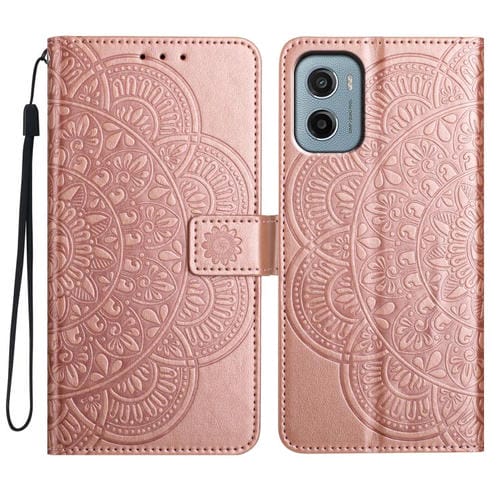 Funda de Cuero con Relieve Floral para Motorola Moto E15 (Oro Rosa)