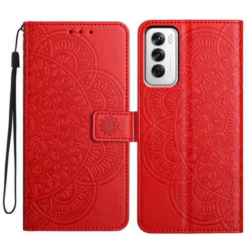Funda de Cuero con Relieve Floral para Oppo Reno12 Global (Roja)