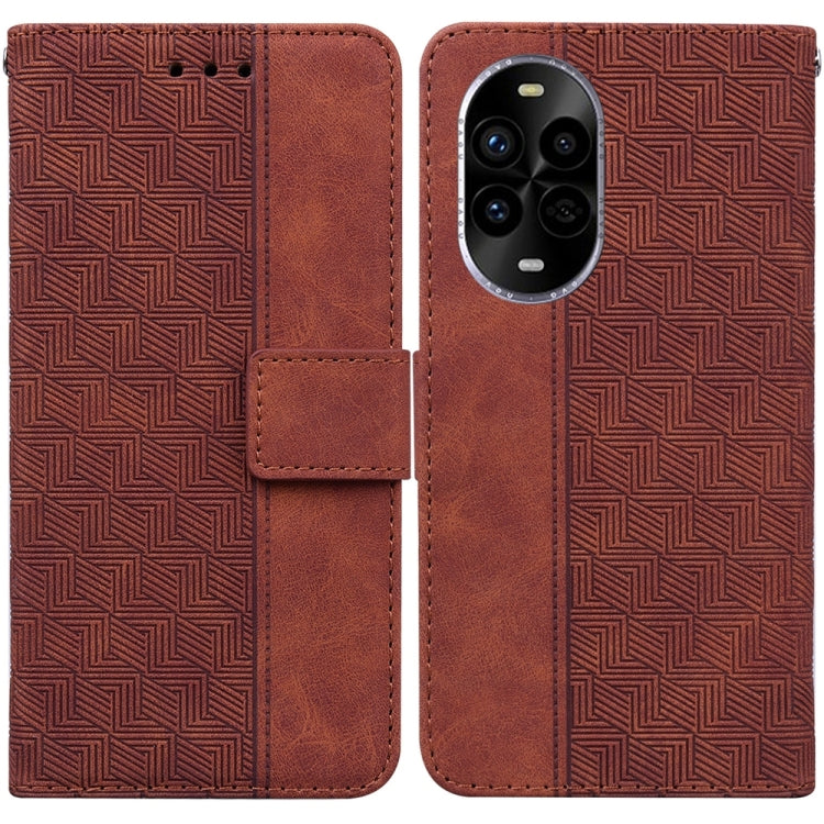 Funda de Cuero con Relieve Geométrico para Huawei Nova 13 Pro (Marrón)