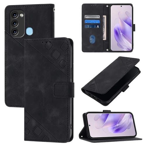 Funda de Cuero con Relieve para Teléfono Itel S17/Vision 3 (Negra)