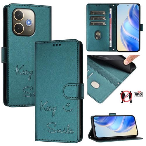 Funda de Cuero con Relieve Rfid para Oppo A5 Pro 5G (Verde Pavo Real)