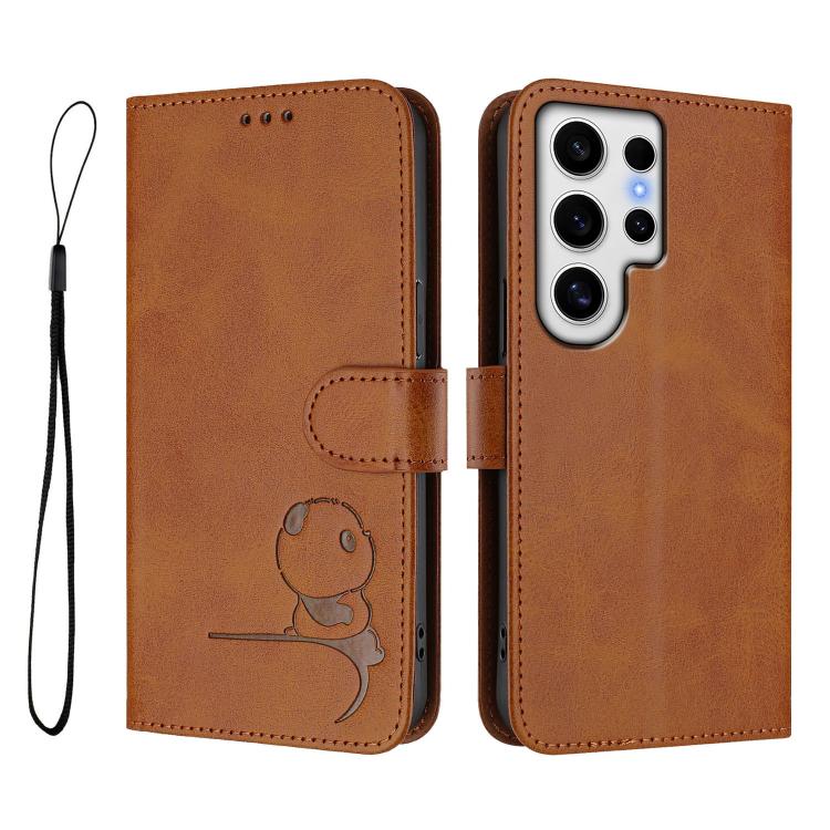 Funda de cuero con relieve RFID y cordón para Samsung Galaxy S24 Ultra 5G (marrón)