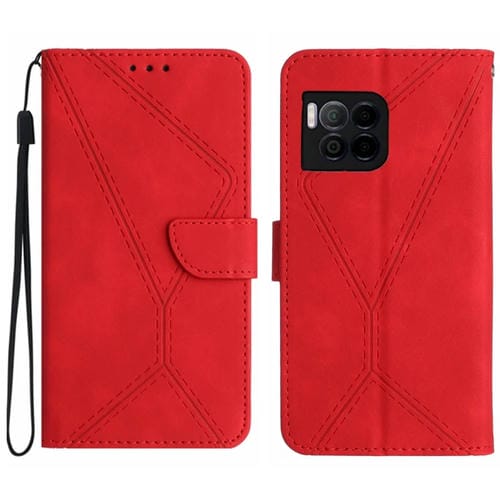 Funda de Cuero con Relieve y Costuras para Teléfono T-Mobile Revvl 7 Pro 5G (Rojo)