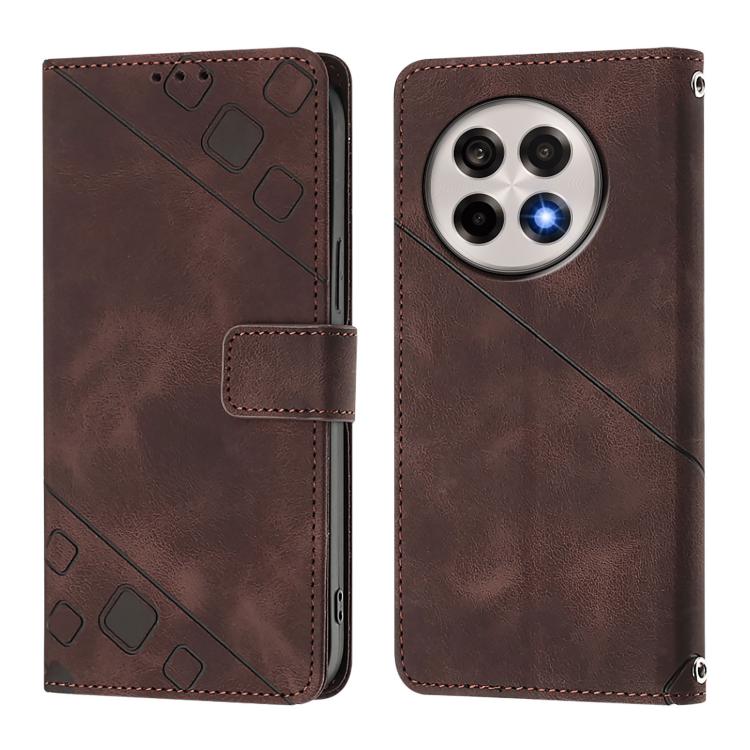 Funda de Cuero con Relieve y Tacto de Piel para OnePlus 13R/Ace 5 Pro 5G (Marrón)