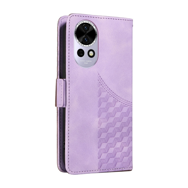 Funda de Cuero con Rombos en Relieve y Estrellas para Huawei Nova 13/Nova 12 (Morado)