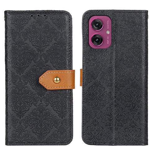 Funda de Cuero con Tapa para Motorola Moto G55 5G Diseño Floral En Relieve (Negro)