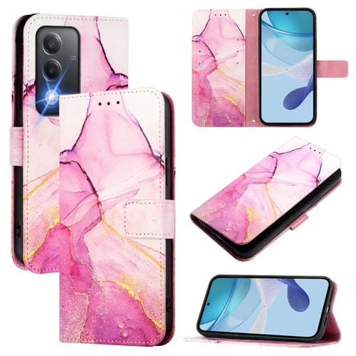 Funda de Cuero con Tapa con Patrón de Mármol para Oppo K12X 5G Global Pt003 (Rosa, Morado y Dorado)