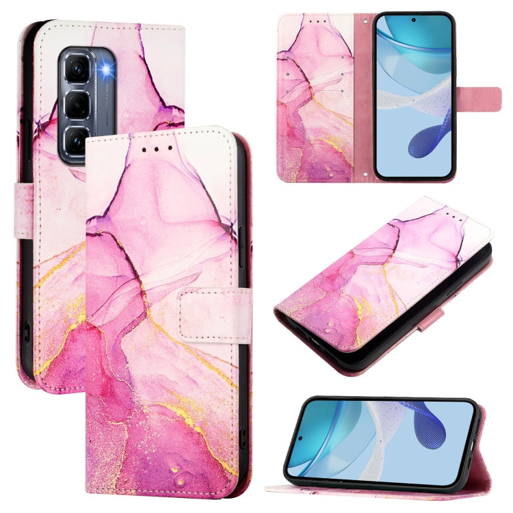 Funda de Cuero con Tapa Mármol para Infinix Hot 50 Pro+ 4G Pt003 (Rosa, Morado y Dorado)