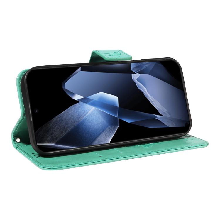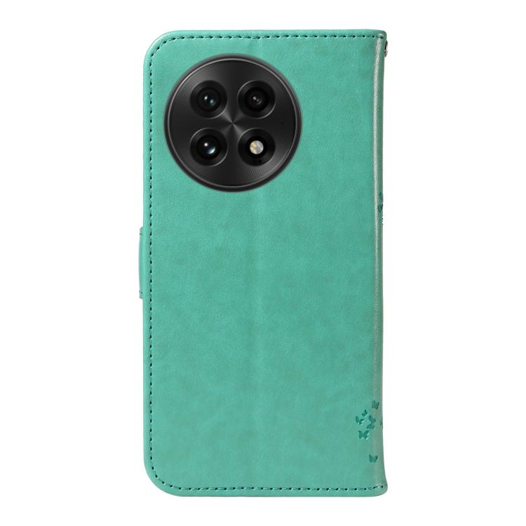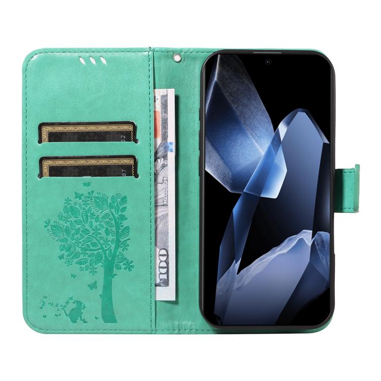 Funda de Cuero con Tapa para OnePlus 13 con Patrón En Relieve Árbol y Gato (Verde)