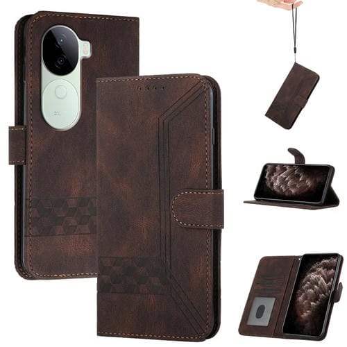 Funda de Cuero con Tapa Cúbica para Teléfono Vivo Iqoo Z9S/V40E (Marrón)