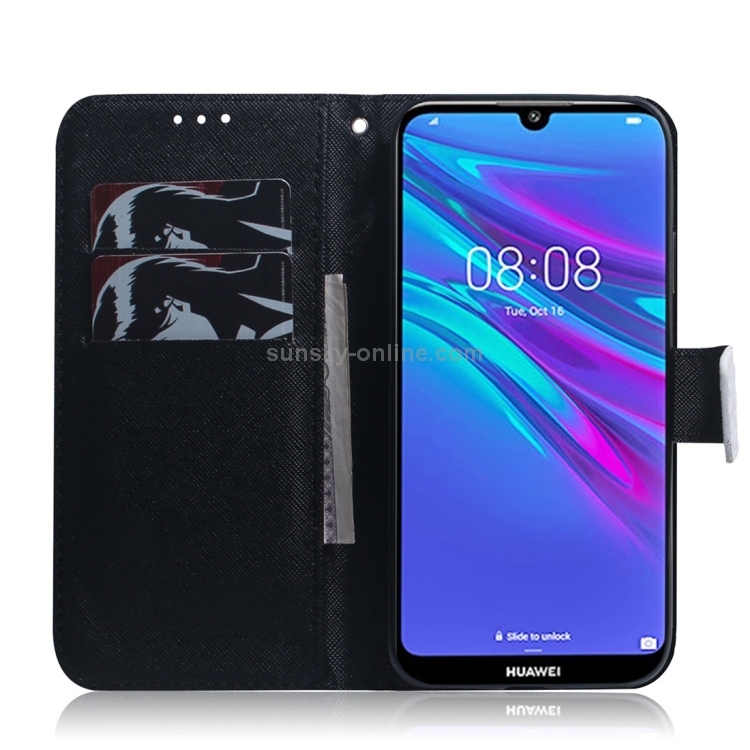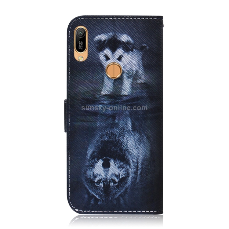 Funda de Cuero con Tapa Horizontal para Huawei Y6 (2019) con Dibujo de Lobo y Perro, Soporte, Ranuras y Billetera