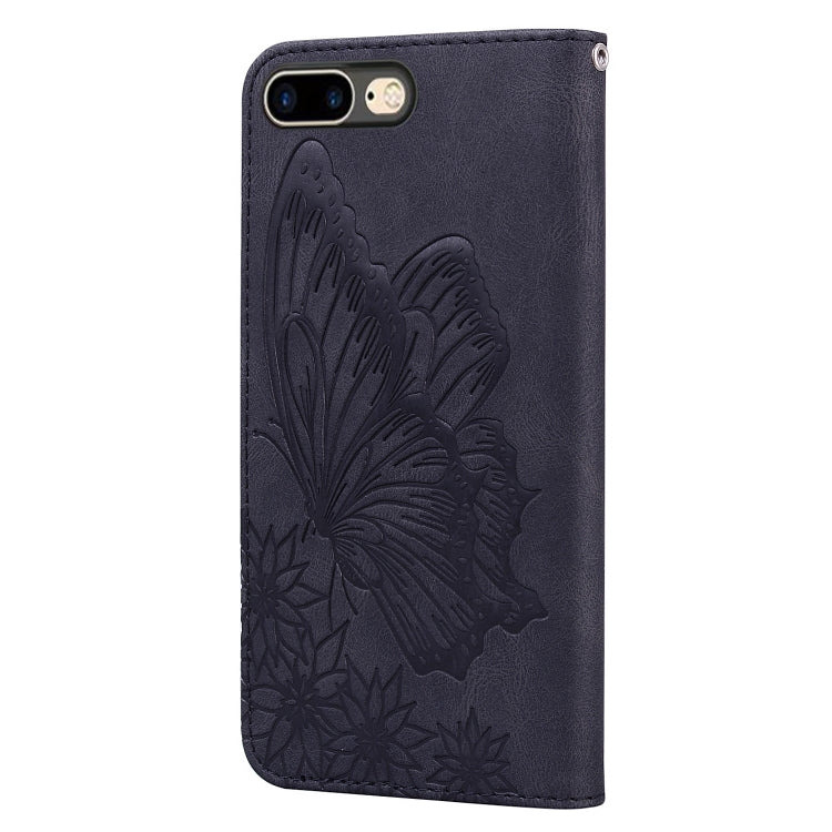 Funda de Cuero para iPhone 6 Plus 6S Plus con Tapa Horizontal Estampado Mariposas Retro (Negro)