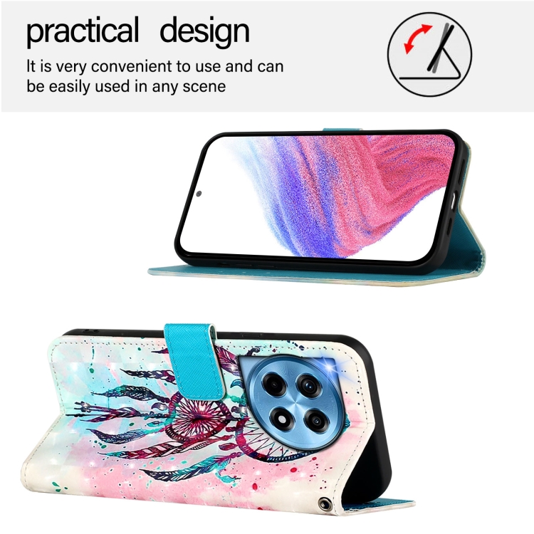 Funda de Cuero con Tapa Horizontal y Pintura 3D Global para OnePlus 12 5G (Campanas de Viento de Ensueño)
