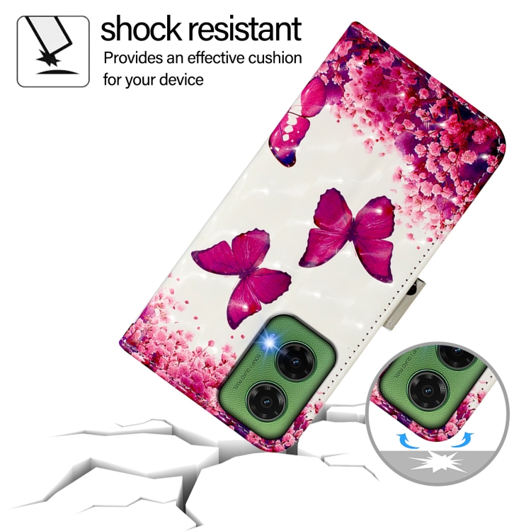 Funda de Cuero con Tapa Horizontal y Pintura 3D para Motorola Moto G35 (Mariposa Rosa)