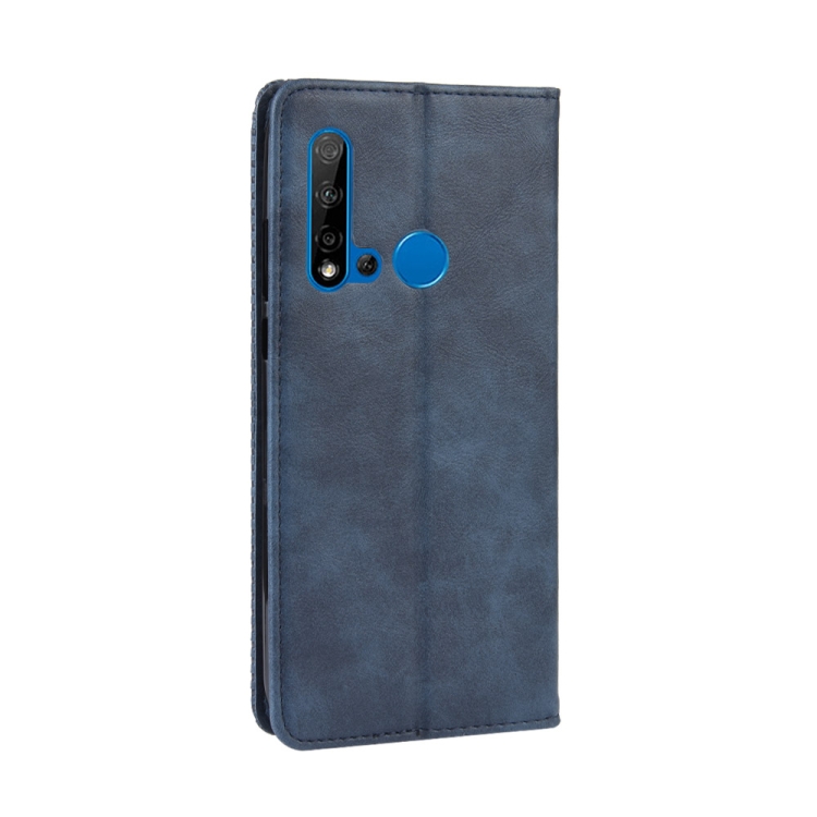 Funda de Cuero con Tapa Horizontal para Huawei P20 Lite (2019) y Nova 5I con Soporte, Ranuras y Marco de Fotos (Azul)