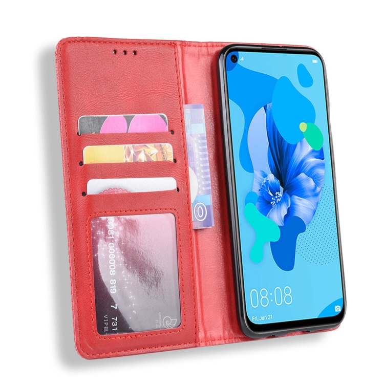 Funda de Cuero con Tapa Horizontal para Huawei P20 Lite (2019) Nova 5I con Soporte y Ranuras (Rojo)