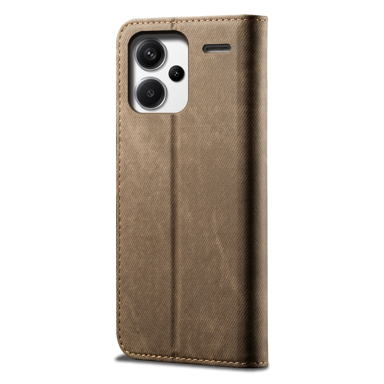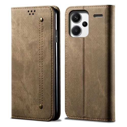 Funda de Cuero con Tapa Horizontal y Textura Vaquera para Redmi Note 13 Pro+ (Caqui)