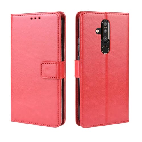 Funda de Cuero Crazy Horse Texture para Nokia X71 (8.1 Plus) con Soporte y Ranuras (Rojo)