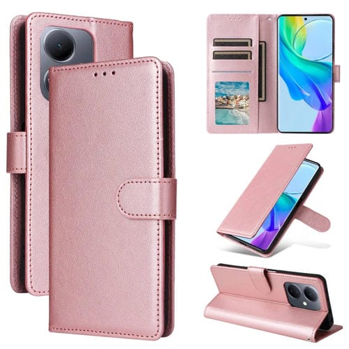 Funda de Cuero con Tapa Horizontal Multifuncional para Vivo Y36 4G Global / Y78 con Ranura para Tres Tarjetas (Oro Rosa)