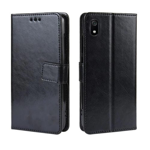 Funda de Cuero con Tapa Horizontal Retro con Textura de Caballo Loco para Xiaomi Redmi 7A, con Soporte, Ranuras para Tarjetas y Marco de Fotos (Negro)