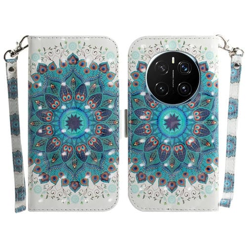 Funda de Cuero con Tapa Horizontal y Diseño 3D para Honor Magic7 Pro (Corona de Pavo Real)