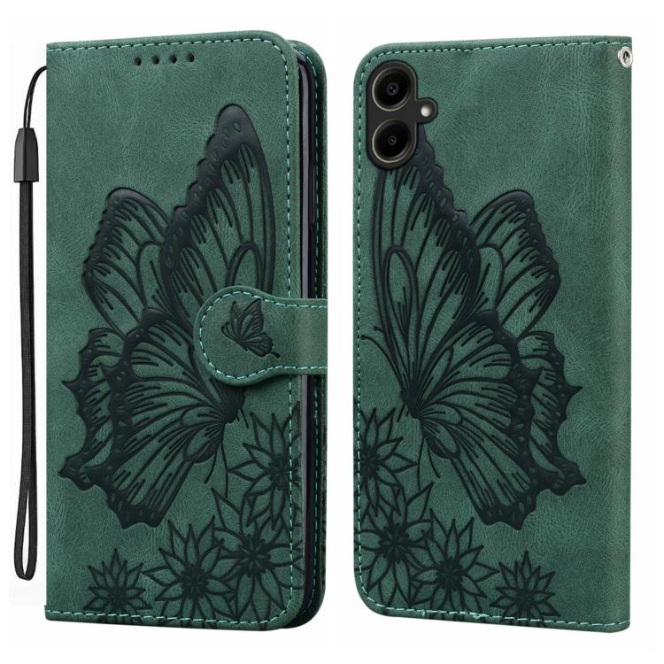Funda de cuero con tapa horizontal y diseño retro de mariposas en relieve para Samsung Galaxy A07 4G/A06 4G (verde)