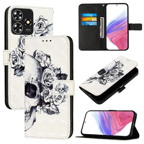 Funda de Cuero para ZTE Blade A73 4G con Tapa Horizontal y Pintura 3D (Calavera)