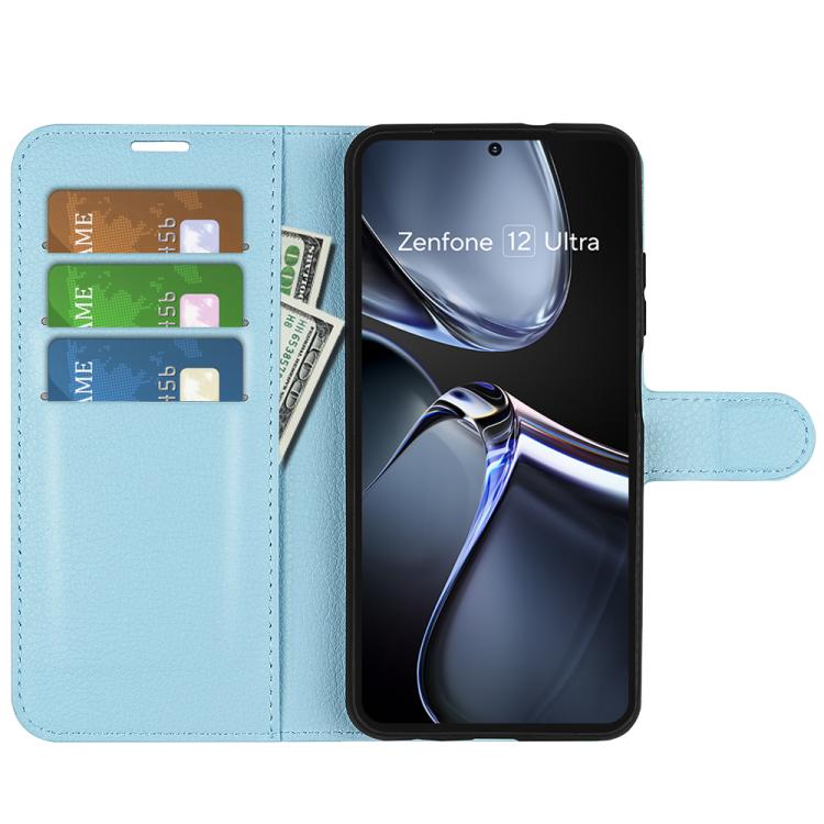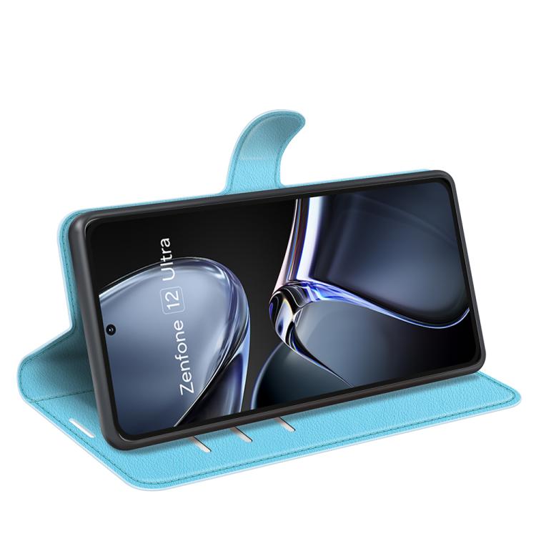 Funda de Cuero con Tapa Horizontal y Textura de Lichi para Asus Zenfone 12 Ultra (Azul)