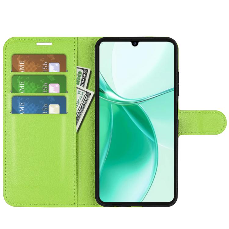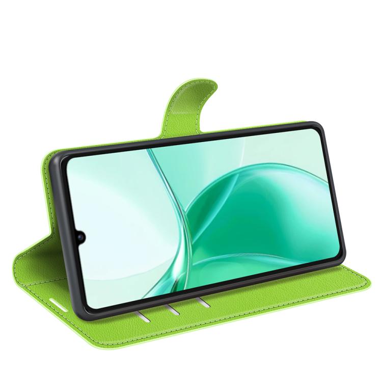 Funda de Cuero para ZTE Blade A35 con Tapa Horizontal, Textura de Lichi y Soporte (Verde)