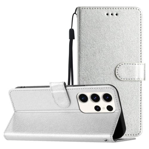 Funda Cuero con Tapa Horizontal Textura Seda Samsung Galaxy S25 Ultra 5G (Plateada)