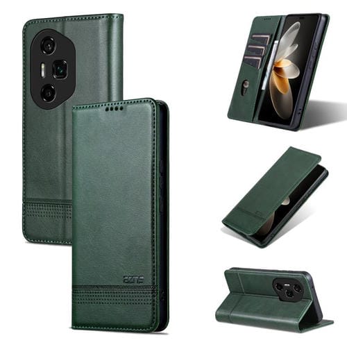 Funda de Cuero Azns con Tapa Magnética y Textura de Piel de Becerro para Honor 300 Ultra (Verde Oscuro)