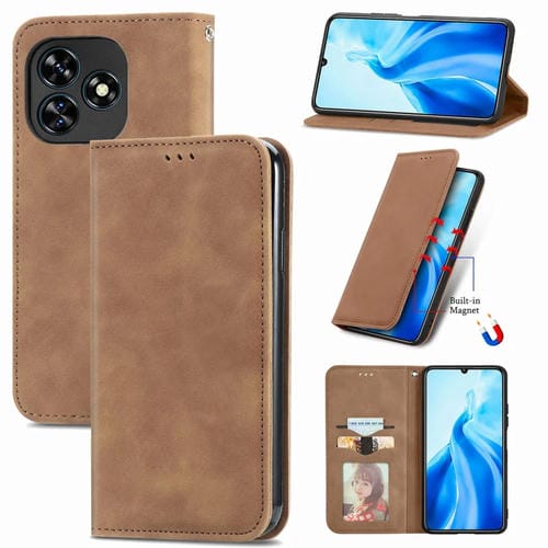 Funda de Cuero con Tapa Magnética y Tacto Retro para Oukitel C51 (Marrón)