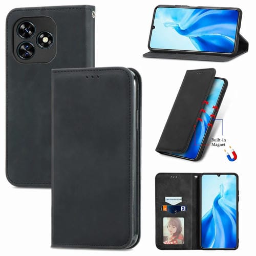 Funda de Cuero con Tapa Magnética y Tacto Retro para Oukitel C51 (Negra)