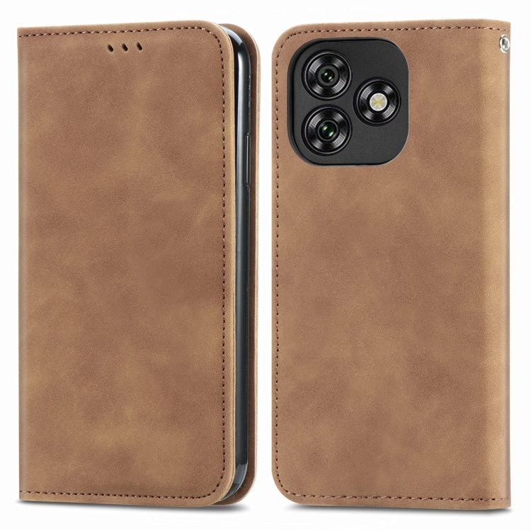 Funda de Cuero con Tapa Magnética para Oukitel C53 (Marrón)