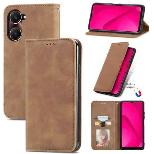 Funda de Cuero con Tapa Magnética y Tacto Retro para Vivo Y37 (Marrón)