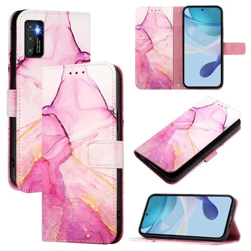 Funda de Cuero con Tapa para Cubot P50 Pt003 Diseño Mármol (Rosa, Morado y Dorado)