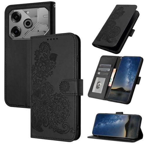 Funda de Cuero con Tapa para Teléfono Tecno Pova 6 Pro Diseño Flor de Datura (Negro)