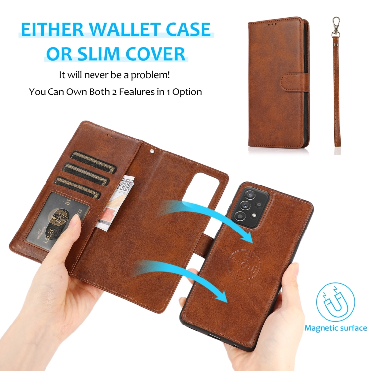 Funda de Cuero Samsung Galaxy A13 4G Tapa Trasera Magnética Desmontable 2 En 1 (Marrón)