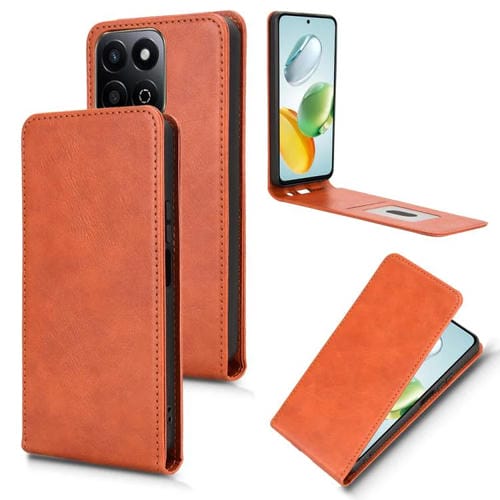 Funda de Cuero con Tapa Vertical Magnética para Honor 200 Smart 5G y Play 60 Plus 5G (Marrón)