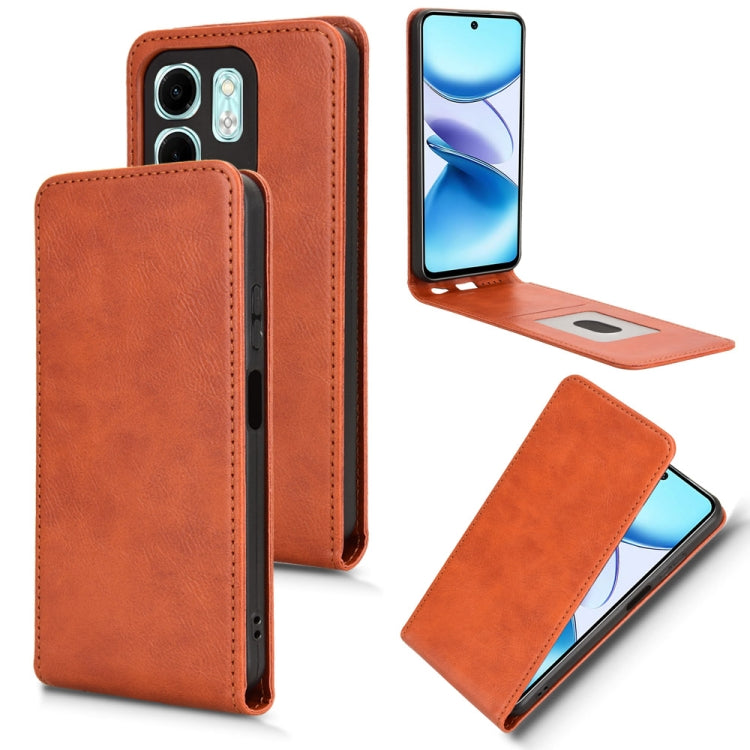 Funda de Cuero con Tapa Vertical Magnética para Infinix Hot 50I 4G (Marrón)