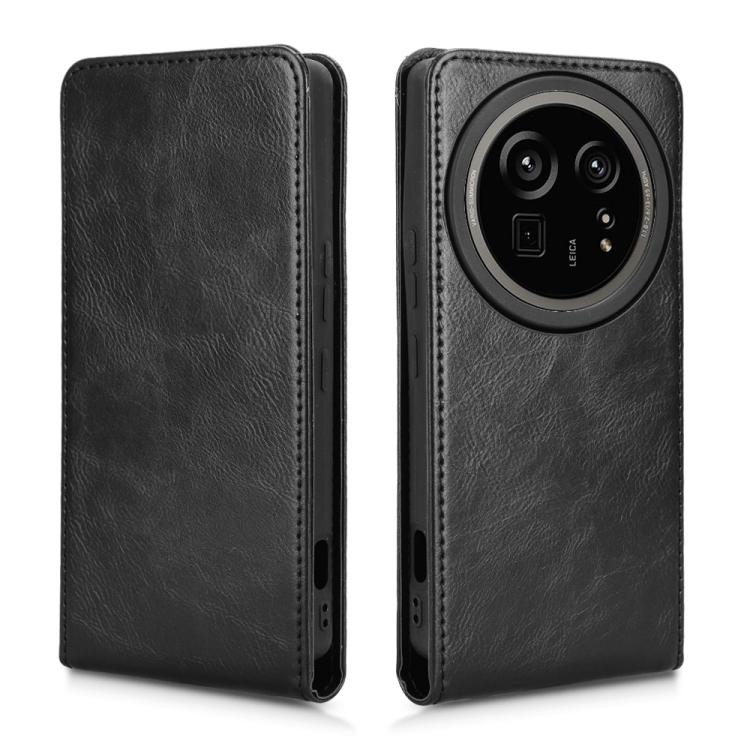 Funda de Cuero para Sharp Aquos R9 Pro con Tapa Vertical Magnética (Negro)