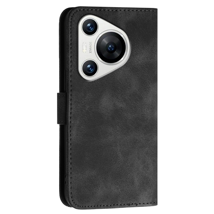 - 1x Funda de Cuero con Tapa y Cordón para Huawei Pura 70 Yx0080 con Diseño en Relieve (Negro)