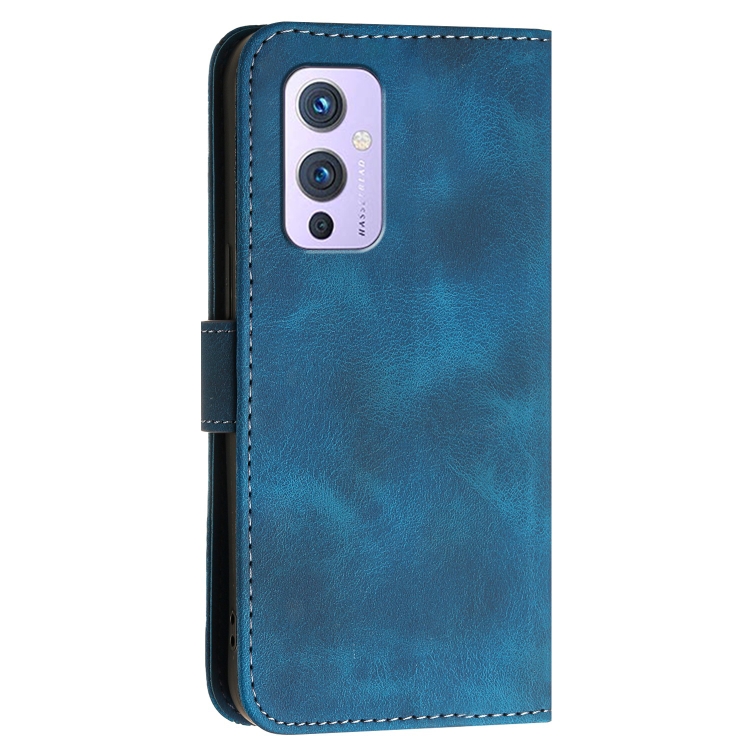 Funda de Cuero con Tapa y Cordón para OnePlus 9 Yx0080 con Diseño en Relieve (Azul Oscuro)