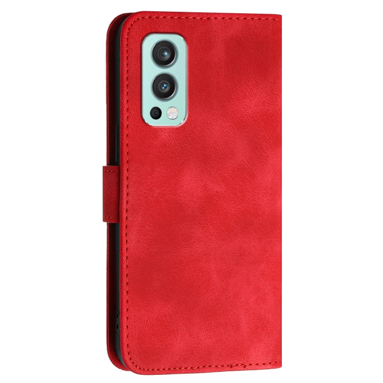 Funda de Cuero con Tapa y Cordón para OnePlus Nord 2 5G Yx0080 con Diseño Mariposa (Rojo)