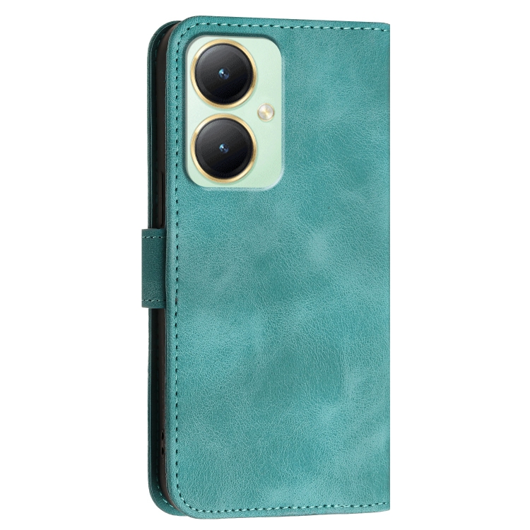 Funda de Cuero con Tapa y Cordón para Vivo Y27 4G Global Yx0080 con Diseño En Relieve de Mariposa y Cuadrícula (Azul Claro)